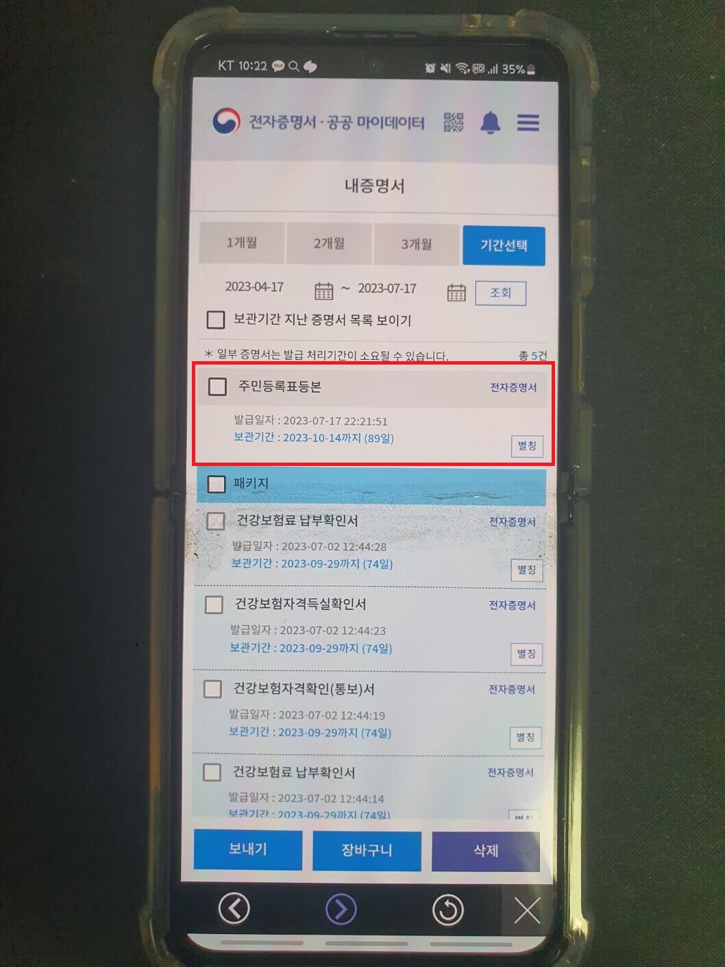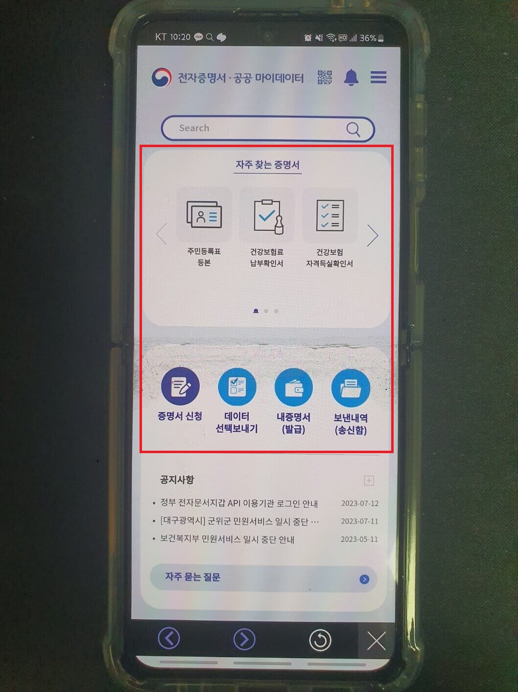 모바일에 다운로드된 전자증명서를 찾는 방법은 아래와 같습니다.